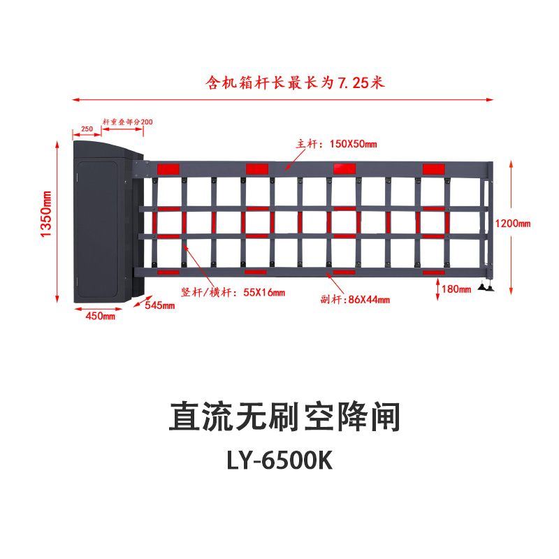 机芯采用直流无刷电机,输出扭矩大、体积小,通过控制器可实现速度任意调节,落杆与抬杆到位时实现减速缓冲,使闸杆平稳到位。