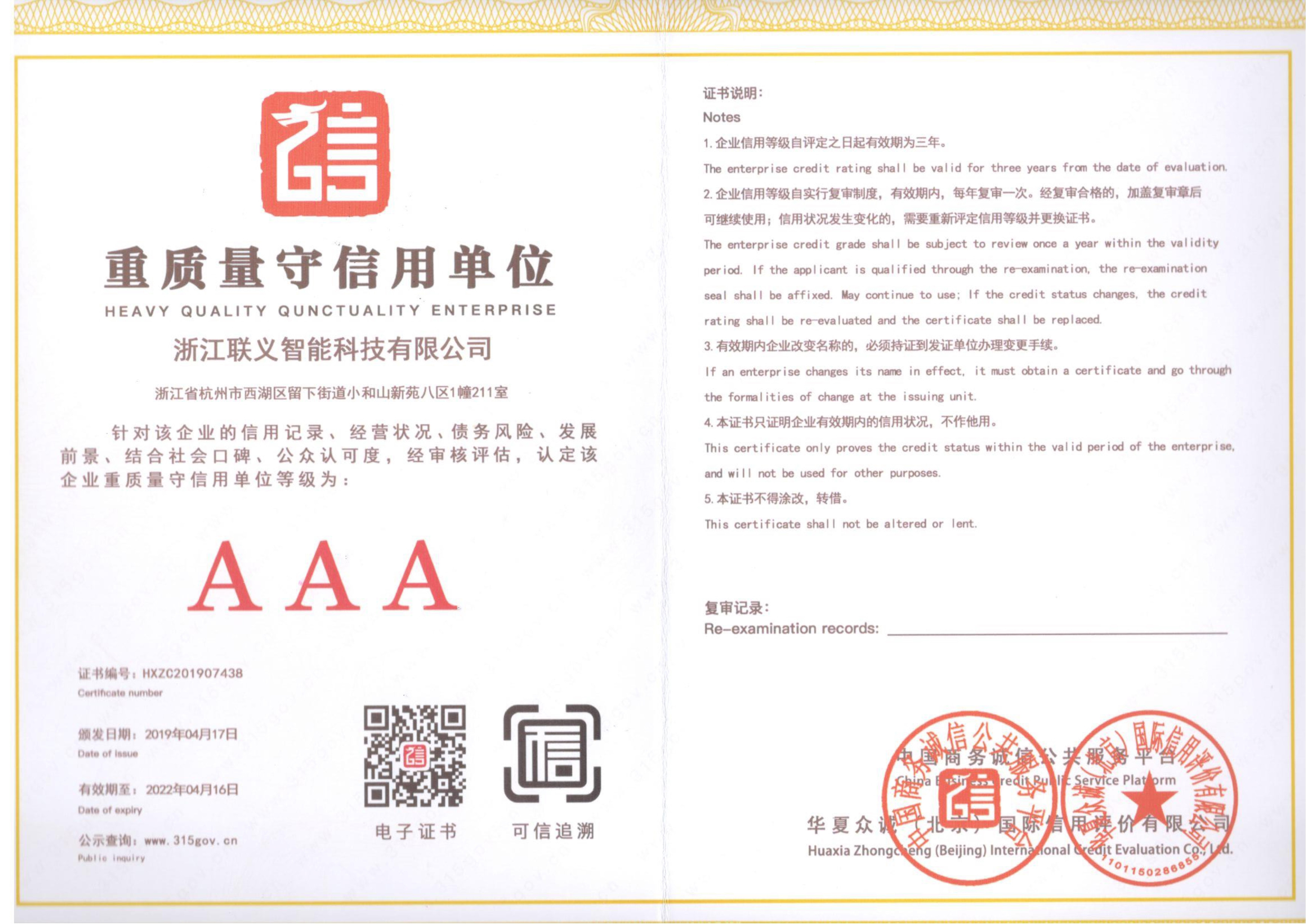 > AAA信用认证